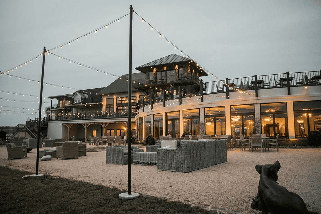 With sweeping views of the vineyards, rolling hills, and Bull Run Mountains, The Vineyard View Ballroom offers an elevated setting for large gatherings and celebrations. The space — adorned with distinctive chandeliers, stone accents, and an adjoining Barrel Club Room — opens to a lower courtyard with outdoor seating and a fire pit. Perfect for corporate dinners, galas, or large meetings, the ballroom can host up to 300 guests for a reception or 250 for a seated dinner with a dance floor.